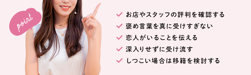 また、将来をにおわせるような発言をしたり、他のキャストには言わない特別扱いをしたりするケースもあります。ただし、キャスト側が恋愛感情を持っていても、スタッフ側にとっては仕事の一環として行われている場合が多い点には注意が必要です。