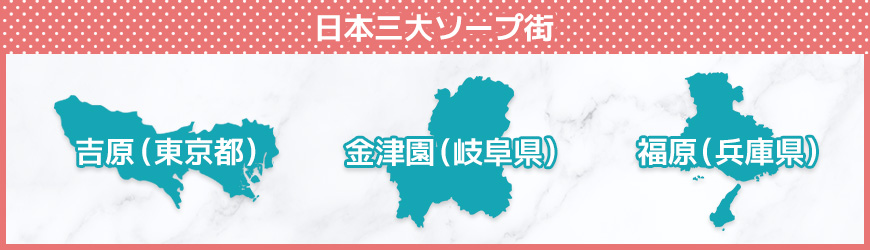 - 全国には数多くのソープ街が存在しますが、その中でも規模や知名度、歴史的背景から「日本三大ソープ街」と呼ばれるエリアがあります。必ず含まれるのは東京・吉原で、残る2つには岐阜・金津園や兵庫・福原が一般的……