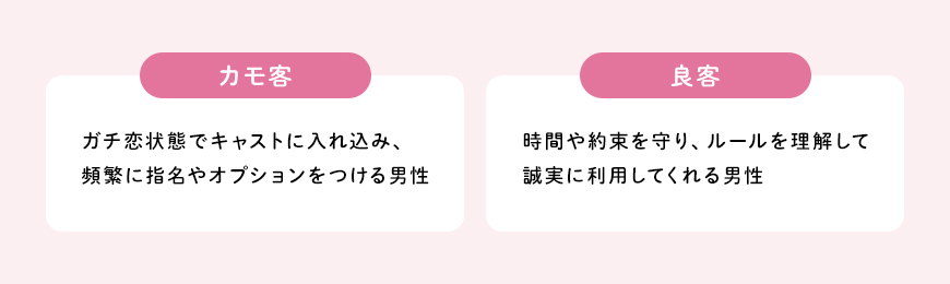 神客ほどの特別感や強い印象はないものの、安定して安心できる存在として信頼されます。キャストにとって「また会いたい」「この人なら安心」と思える、最も理想的なリピート客であり、長期的な信頼関係を築きやすい存在です。