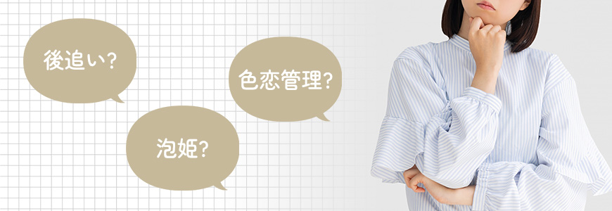 | 後追い | サイトのSNSや口コミ、ネット掲示板などで感想を読んでからお店や女の子を決めるお客さんのこと。 |