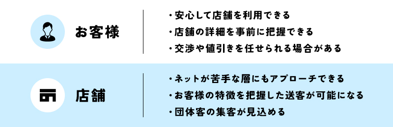 実店舗で案内を行うため、インターネット予約に不慣れな人や、土地勘のない人にも認知してもらいやすく、来店につながりやすくなります。