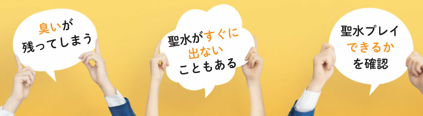 聖水といっても人のおしっこであり、プレイ後にはアンモニア臭が残るため、プレイする場所には気を付けてください。特に、賃貸物件の自宅にデリヘル嬢を呼ぶ場合は注意が必要です。ビジネスホテルやラブホテルでも、過度に汚したら、出入り禁止や罰金の対象となります。
