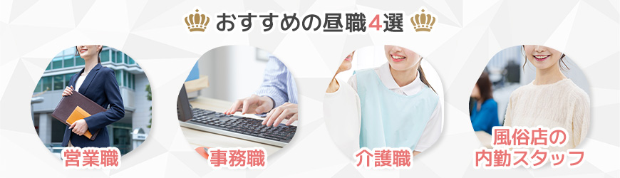 風俗を辞めた後は、安定した生活を送るためにも自分に合った昼職を見つけることが大切です。未経験から挑戦できる仕事も多く、スキルや性格に合わせて選べば長く続けやすくなります。ここでは特におすすめの4つの職種を紹介します。
