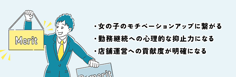 結果として接客の熱量、出勤姿勢、指名獲得への意識が高まり、フリー客への対応やリピーターづくりにも前向きになりやすく、お店全体の売上増加につながる構図です。