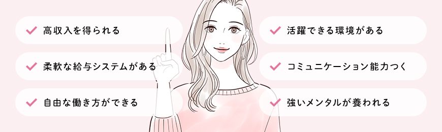 風俗の魅力は、収入面の強さだけでなく、働き方の自由度やスキル習得の機会が広い点にあります。ここでは、風俗で働くメリットについて詳しく解説します。
